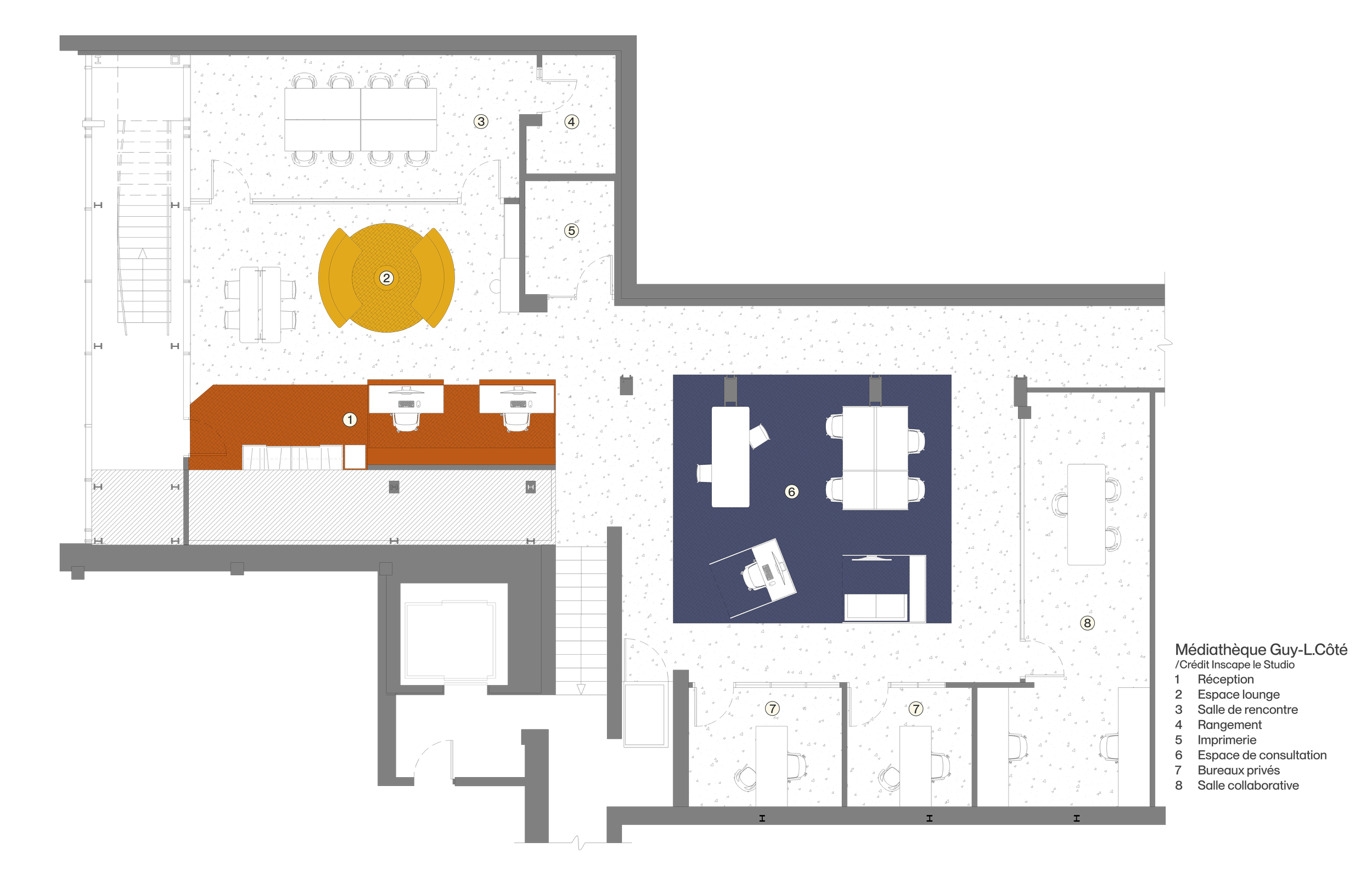 « L’équipe d’Inscape a saisi l’essence de la Médiathèque en proposant des espaces aux fonctions distinctes, dans un design unique et harmonieux. Il s’agit d’un environnement agréable autant pour les usagers que pour l’équipe de la Cinémathèque québécoise. »