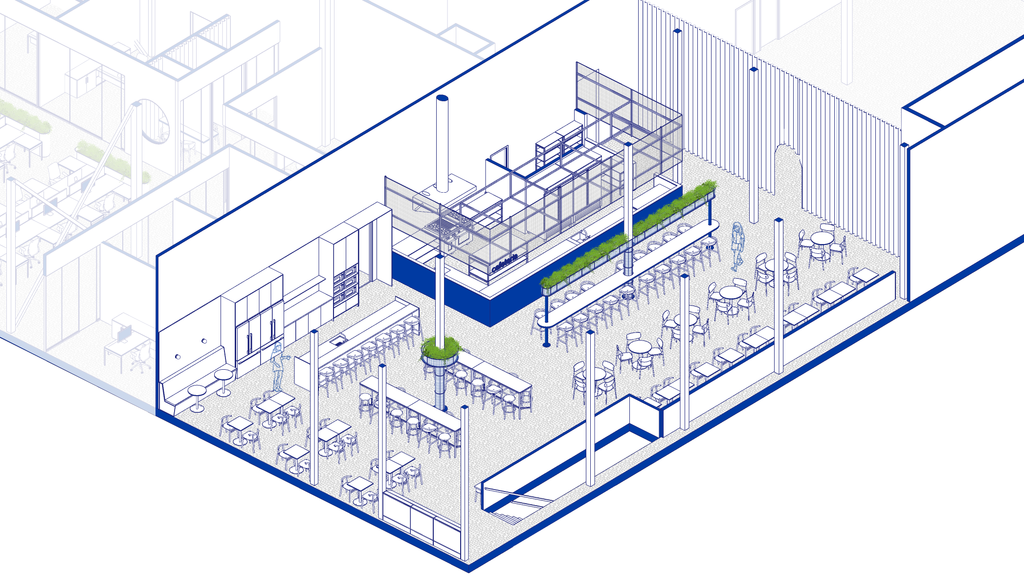 Le défi principal résidait dans l’articulation des échelles – de l’espace macro à l’espace micro – ainsi que dans la gestion des délais serrés. Le résultat : un environnement fonctionnel, vibrant et aligné avec la mission et l’esprit de l’entreprise.